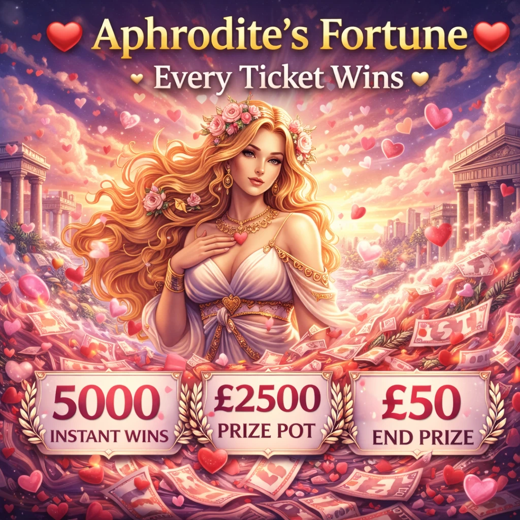 In Aphrodite’s Fortune, every single ticket is a winner – because love never leaves you empty-handed. Whether it’s a divine jackpot or a sweet little surprise, each ticket reveals an instant win gifted by the goddess herself.