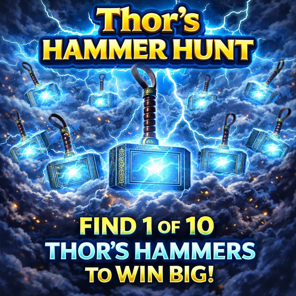 Somewhere within this game are 10 Thor’s Hammers ⚒️ — and if you find one, you win big.